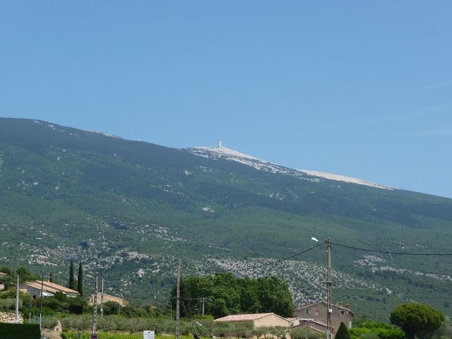 Der Berg ruft. Wir nehmen die südliche Route über Bedoin und haben den Mont Ventoux mit seiner weißen Kuppe immer in Sicht.