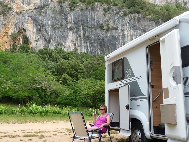 Wir parkten direkt vor dem Campingplatz Camping du Pont-d'Arc (Teppichstange wurde entfernt) und unternahmen eine kleine Wanderung zum Restaurant Auberge de Vallon Pont d'Arc.