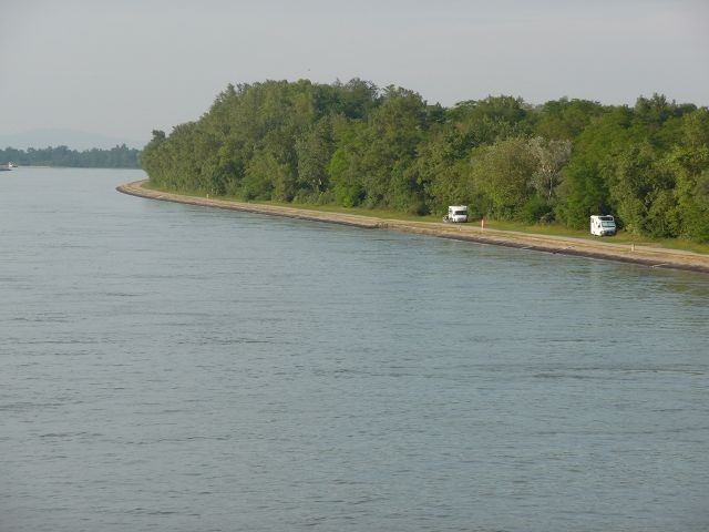 Eigentlich wollten wir hier auf einen der beiden Campingplätze übernachten. Da wir uns aber nicht über die Brücke trauten (gesperrt für 3.5 t und breiter 2,10 m )