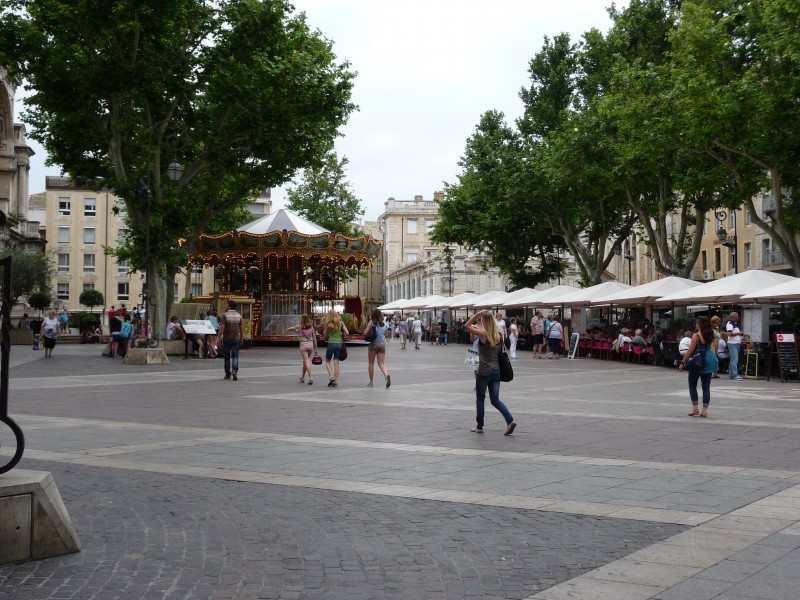 Wir parkten auf dem WOMO-Stellplatz - Ile de Piot (tagsüber bewacht) und gingen die paar Schritte zum Papstpalast zu Fuß. Es fährt aber auch ein Bus. Wir schlenderten noch ein wenig durch die Gassen der Altstadt und und aßen etwas auf der Place de I'Horologe.