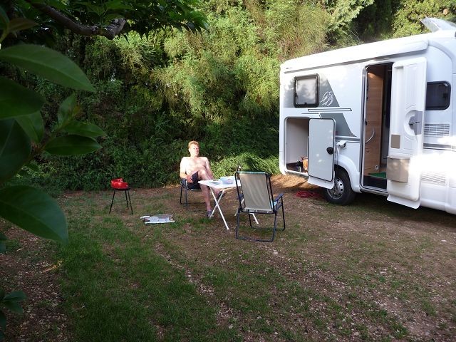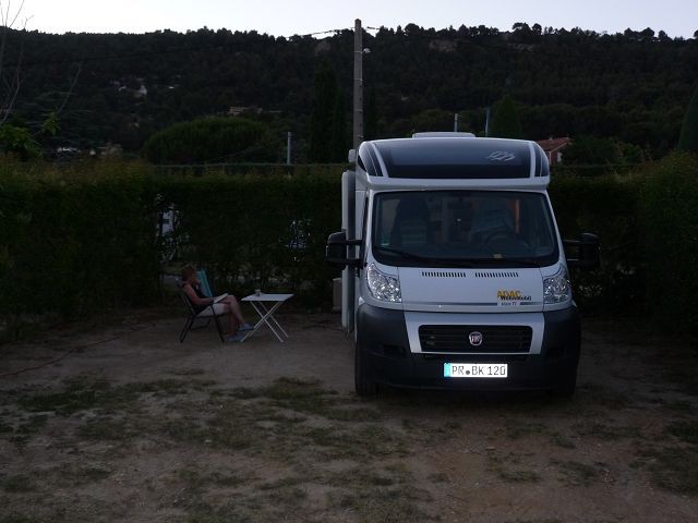 Jetzt hatten wir echt genug. Wir fuhren den nächsten Campingplatz in Beaumes de Venise an. Ab 19:00 Uhr werden hier die Tore geschlossen und man kommt nicht mehr rauf. Wir waren zum Glück um 18:55 dort. Schöner ruhiger Platz und sehr günstig - nur 13,65 mit Strom.