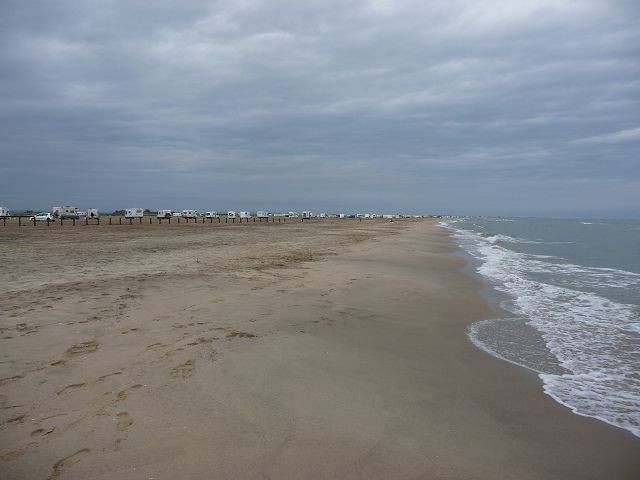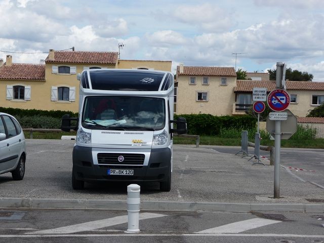 Unser Ziel Saintes Maries de la Mer - Plage Est. Gegen 16:30 trafen wir dort ein. Wir zahlten 9,50 € für eine Nacht und fanden in hinteren Teil noch einen freien Platz.