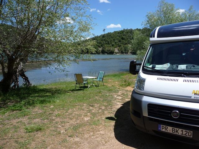 Stellplätze direkt am Wasser, Sanitär OK, ab 15 € mit Strom. Betreiber spricht sehr gut deutsch. Nach einer kleinen Ortsbesichtigung ging es dann weiter.