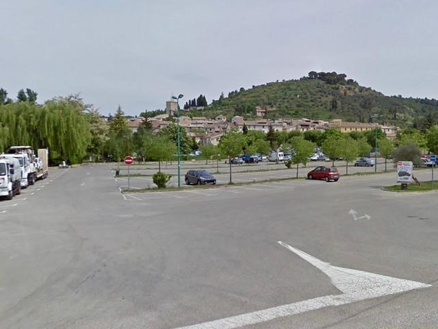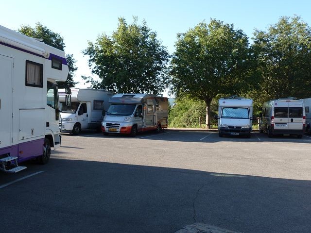 Auf dem offiziellen Stellplatz, einem Großparkplatz mit gekennzeichneten Stellflächen für WOMOs fanden wir dann unser Nachtquartier. Leider vergessen ein Bild zu machen aber Google machts möglich.
