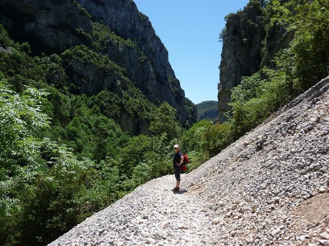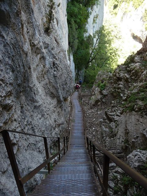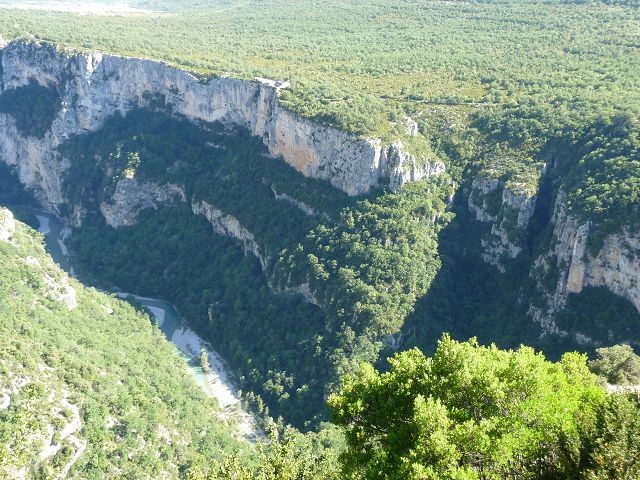 Heute hatten wir uns viel vorgenommen, Wir wollen die berühmte Wanderung - Sentier Martel - durch die Verdonschlucht unternehmen. Wir nahmen die nördliche Route mit schönen Einblicken in die Schlucht und parkten am Point Sublime. Wanderschuhe an, Rucksäcke gesattelt und los ging es. Nach 6 anstrengenden Stunden auf teils abenteuerlichen Wegen, steilen Eisentreppen und zwei Tunnels (einer 800m lang - ohne Taschenlampe nicht machbar) erreichten wir ziemlich ausgepumt die La Maline-Hütte. Während der Wanderung stellten wir fest, dass uns viele Wanderer entgegen kamen aber kaum welche in unsere Richtung liefen. Irgendwann auf halber Strecke sagte uns jemand, dass wir uns die schwierige Route ausgewählt hätten, denn die letzte Stunde geht es nur noch bergauf und das auch noch ziemlich steil. Und so war es auch!
