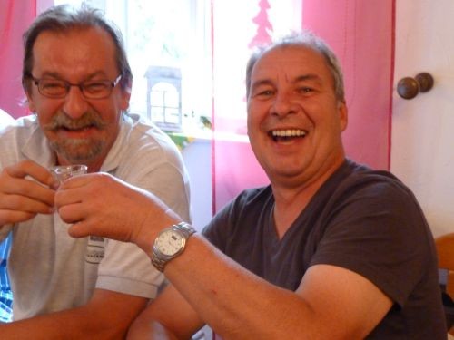 Kurz vor 12:00 sitzen wir am Frühstückstisch und nach einer Seeumrundung machen wir uns auf den Weg zur Brennerei, bei der uns Marianne zu einer Führung angemeldet hat. Im Schnelldurchgang gewinnen wir so einen ersten Eindruck von diesem sehr interessanten Städtchen. Teilweise riesige Fachwerkhäuser stehen dicht aneinandergedrängt am Berg. Richtig gemütlich ists hier.