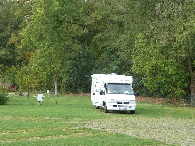 An drei Seiten eingezäunter SP für 7 Mobile auf Rasengittersteinen, mit großzügiger Rasenfläche vor der Schranke des AZUR-Campingplatzes. Rezeption und Sanitärgebäude, die selbstverständlich mitbenutzt werden dürfen, sowie ein kleines Restaurant liegen direkt gegenüber. Sowohl der SP, als auch der CP sind sehr gepflegt.