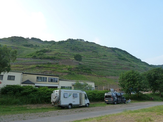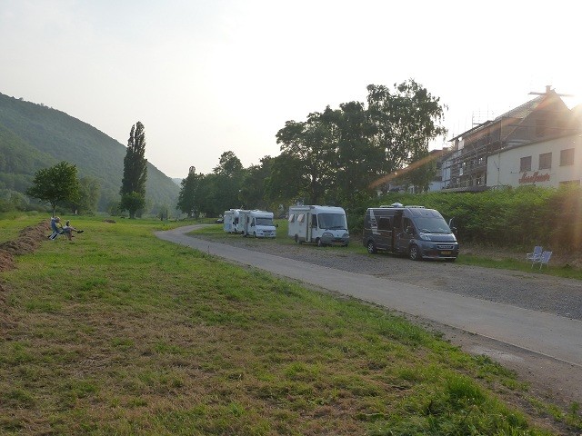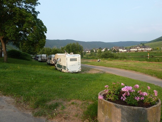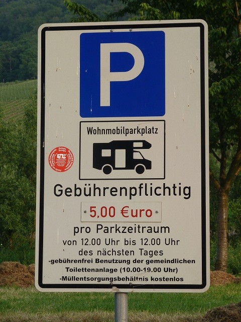 Gebühr 5,00 Euro die morgens gegen 08:00 Uhr kassiert wird. Eigentlich soll, laut dem netten Herren, der die Gebühr kassiert, quer zur Straße gestanden werden. Allerdings ist der Platz so abschüssig, dass man selbst mit Keilen nicht grade stehen würde. Valwig ist ein sehr kleines Weindörfchen mit engen Gässchen und einigen netten Restaurants.
