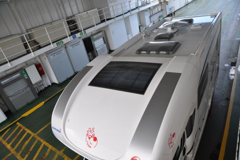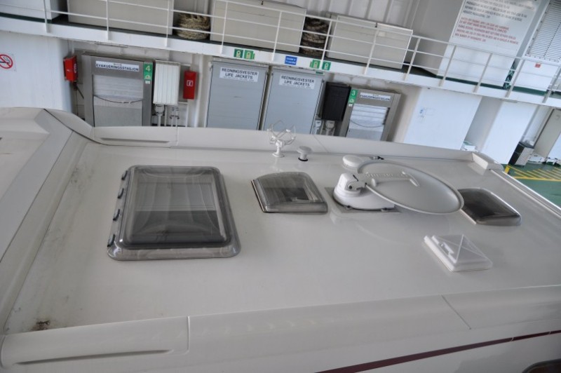 Wie schoen, dass man auf Faehren auch mal aufs Dach schauen kann.