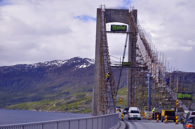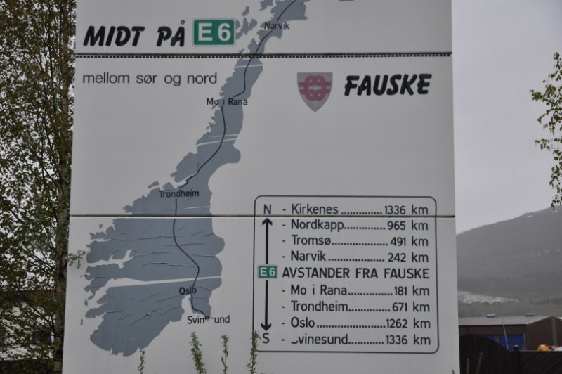 Danach mussten alle mal Pipi :D ![]() Die wunderschoene 17, die ich jedem Norwegenreisenden trotz der teuren Faehrkosten waermstens empfehle endet und es geht ueber die 80 wieder auf die 6, die bei Fauske ihren Mittelpunkt mit einem Schildchen zelebriert.