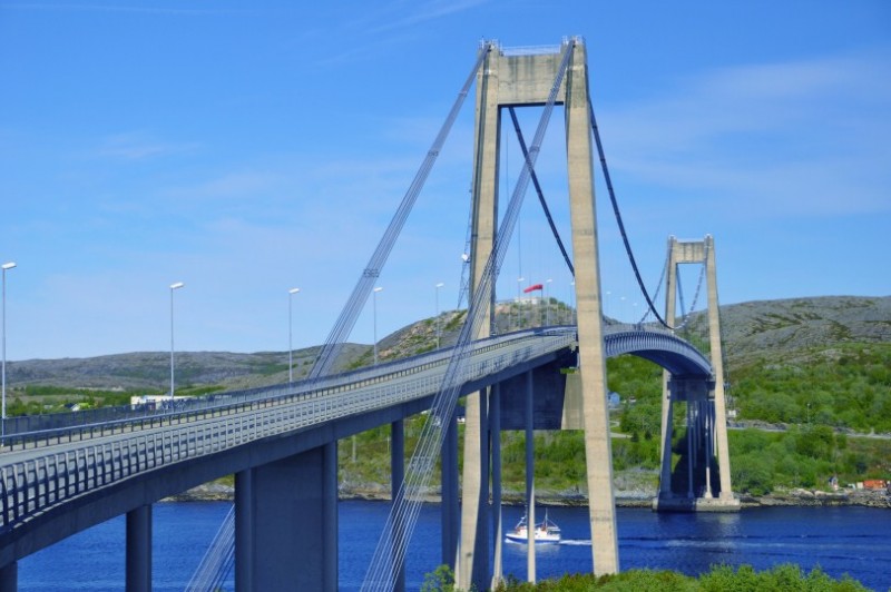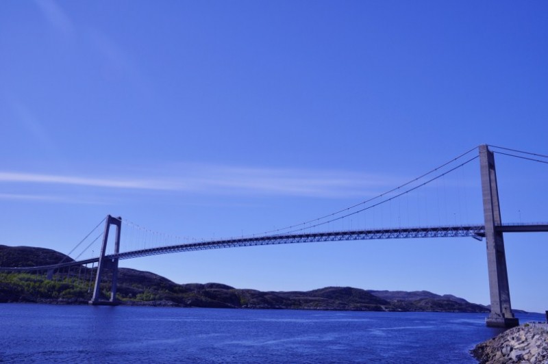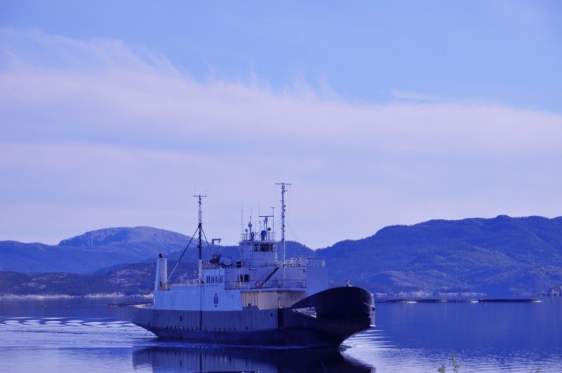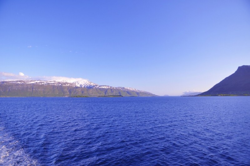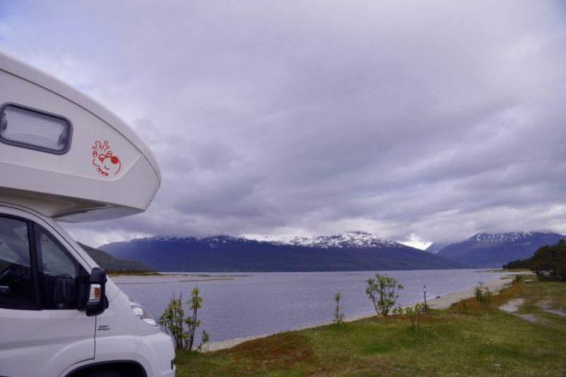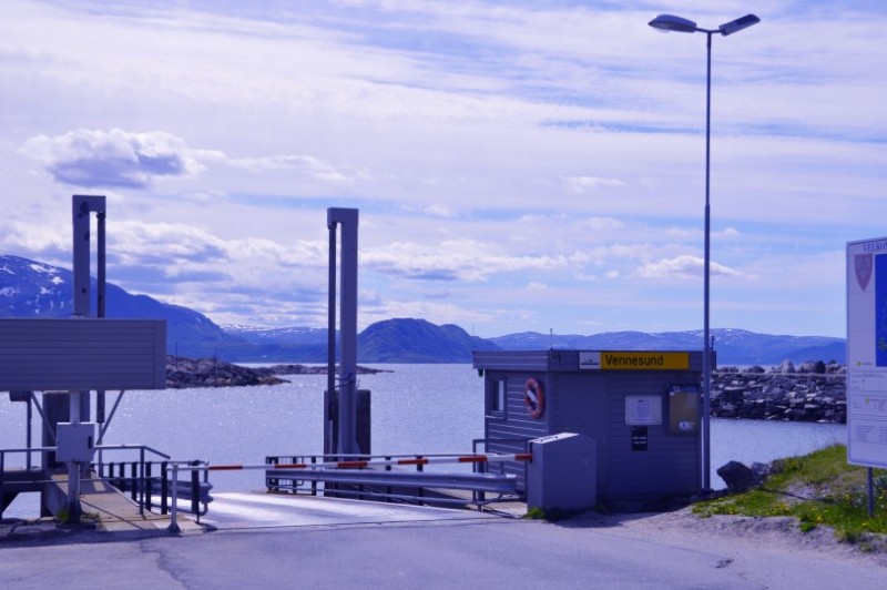 Weiter auf der 17: Uebernachtet wurde kurz nach dieser Bruecke in traumhafter Lage kurz vorm Faehrhafen nach Hofles, wo wir die erste Inlandsfaehre nahmen. Faehrgebuehren werden nach Laenge berechnet - die Grenze liegt bei 7 m. Unser Rudolph traegt die Typenbezeichnung 690, von daher... Insgesamt sollten es 7 Faehren werden, die uns zwischen NOK 188 und NOK 454 kosteten. Man kann grob schreiben, dass Faehren zwischen 20 und 25 min rund NOK 180-230 kosten. Bei 30 min ist man bei rund NOK 300 angelangt und 1h Faehrfahrt kostet rund NOK 450. Diese Faehren bucht man nicht, sondern faehrt mit der jeweils naechsten. Das kann in der Hochsaison mal dazu fuehren, dass man 1-2 Faehren warten muss. Im Juni sollte das fast nie passieren. Die Faehrzeiten haben wir vorher im Internet recherchiert. TIPP: Unter Kystriksveien.no kann man sich auch eine kostenlose kleine Broschuere auf Deutsch bestellen, die alle Zeiten und Tipps zu weiteren Ausfluegen enthaelt. Dies hilft auch bei der Planung.