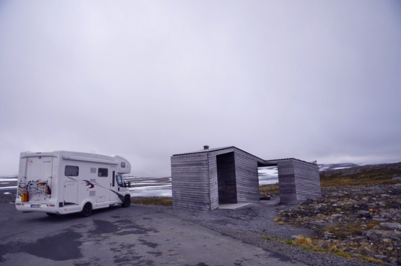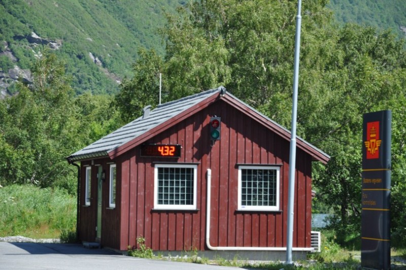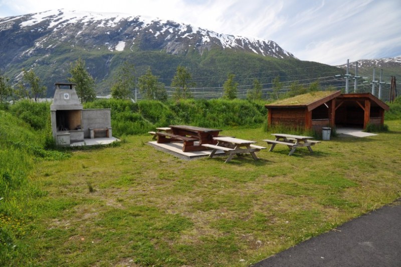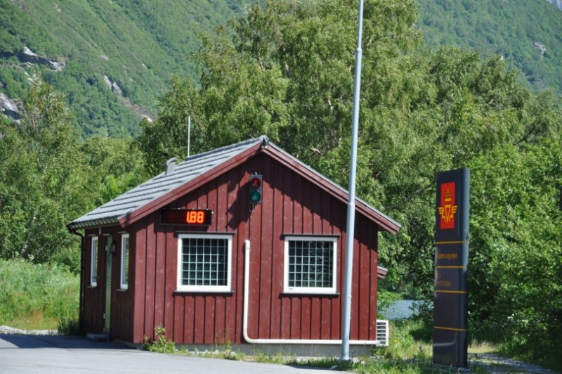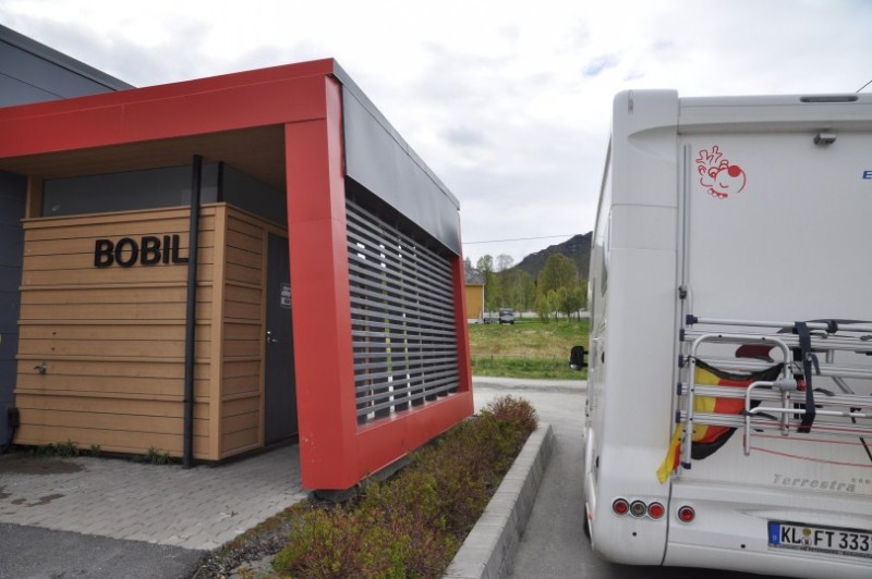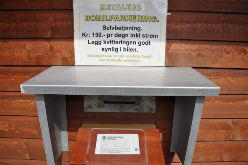 Auch vielen bekannt, aber um Neulingen die Angst am Prozedere zu nehmen, eine kleine Beschreibung eines SP. Ein typischer Stellplatz mit Selbst-check-in in Sunndalsoera. Grosse Parkflaeche, Strom, WC, Versorgung, Entsorgung, Grill und Grillhuette fuer NOK 150. Man zieht einen Umschlag, beschriftet diesen mit Nummernschild und An- und Abreise, wirft sein Geld hinein und legt den Durchschlag in die Windschutzscheibe. Hat uns nicht zugesagt, da noch 2 andere WoMo dort standen - soviel Enge waren wir in diesem Urlaub nicht gewoehnt :razz: Aber als anschauliches Beispiel sicher interessant.