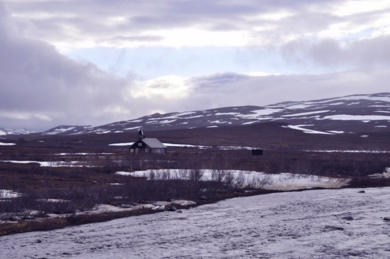 Und immer weiter gehts Richtung Norden. Bei Aisaroaivi trifft man auf diese Samenkapelle (und friert bei 5 Grad und einer steifen Brise, die daraus gefuehlte 0 machen).