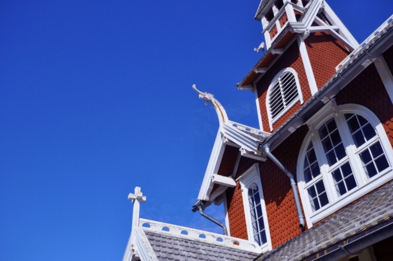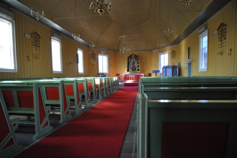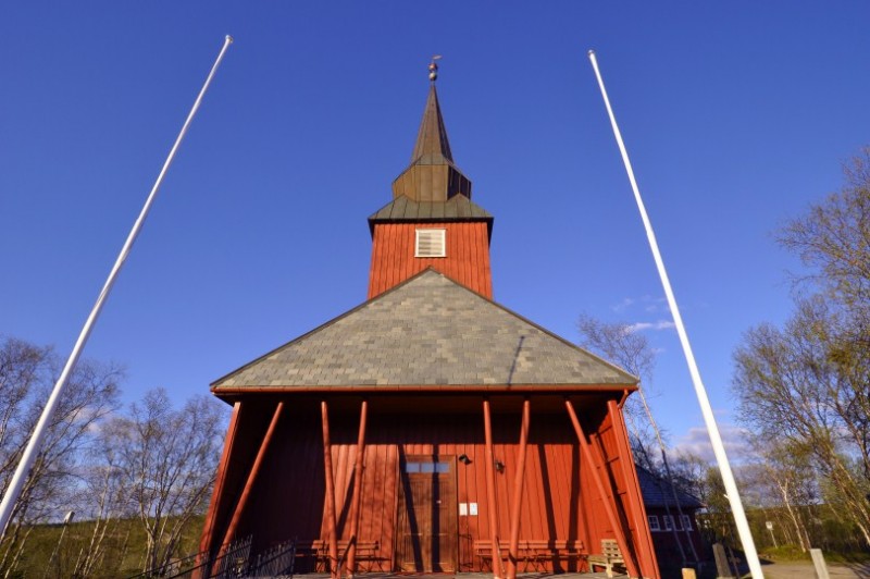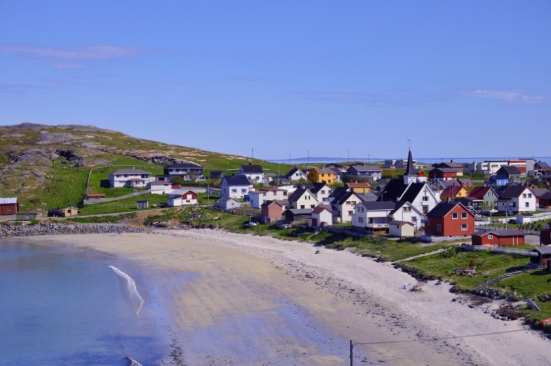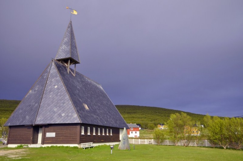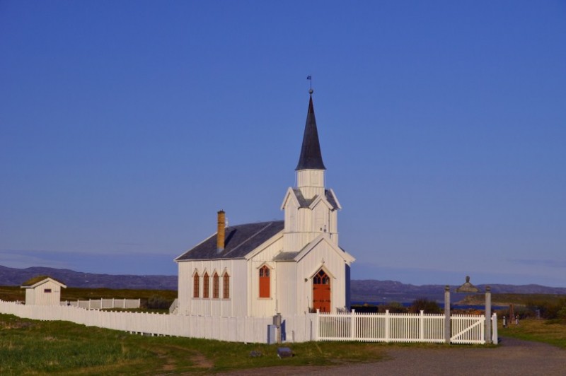 Und an dieser schoenen Kirche in Nesseby haben wir morgens uebernachtet.