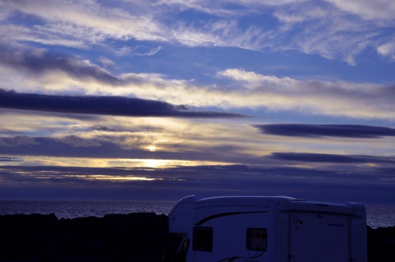 Hier passt das Wetter ploetzlich wieder und wir bleiben bis 5h morgens wach und geniessen die Sonne.