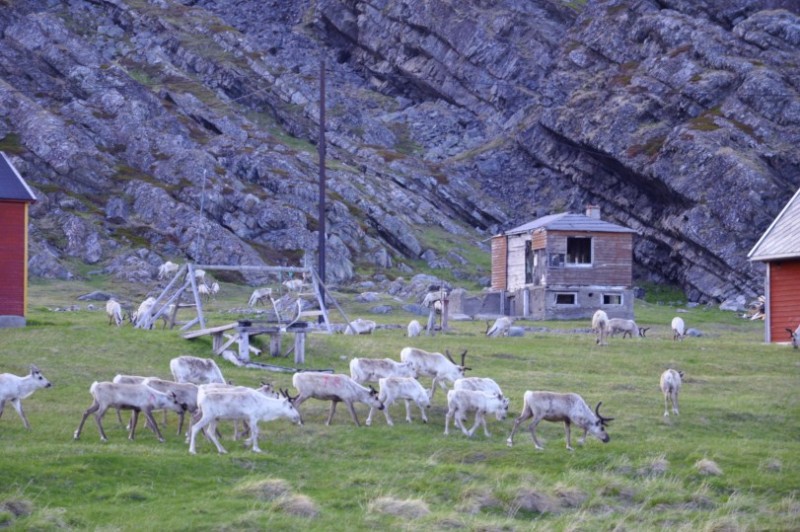 ![]() Wir naehern uns dem Nordkap und somit treffen wir auch vermehrt auf Rentierherden