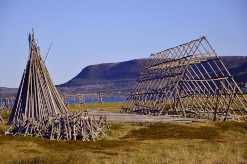 An diesen Gestellen wird Fisch zum trocknen aufgehaengt.