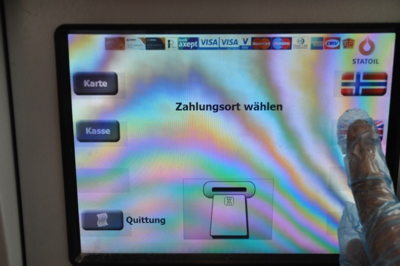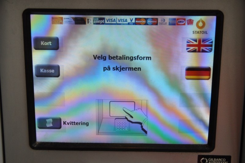 An dieser Station ( auf die Beschreibung achten ) kann man in FIN Bar bezahlen (sonst steht man mit deutscher Kreditkarte vor dem Saeulenautomat und bleibt trocken) - in NOR und SWE kann man meistens an der Zapfsaeule waehlen, ob man mit Karte (Kort) oder Bar bezahlt.