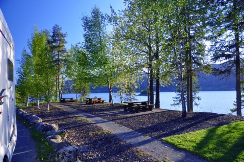 Uebernachtet wurde an der 6 an einem schoenen ruhigen Rastplatz bei Ringebu.