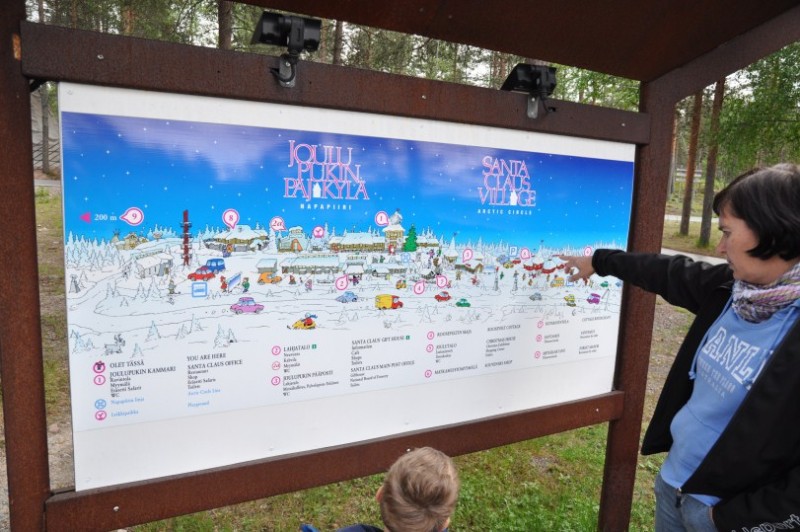 ![]() Und dann sind wir im Santa Claus Village in Rovaniemi angekommen. Hier kann man nicht nur TIPP: kostenlos 4 KM vor der Stadt uebernachten, sondern auch das Postamt des Weihnachtsmannes und natuerlich ihn selbst besuchen. Dazu ein paar Souvenirlaeden und Restaurants.