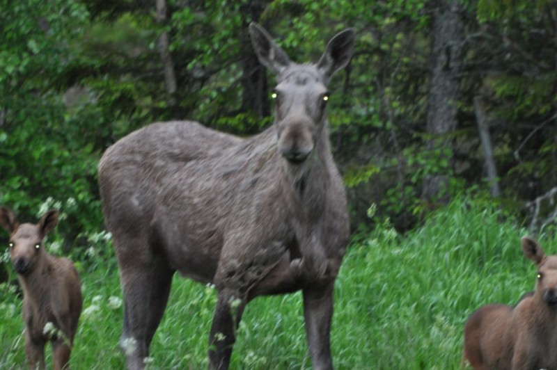 Nun wollten wir den Heimweg ueber die schwedische Ostkueste antreten und fuhren nach Haparanda und weiter nach Lulea. Zuerst sehen wir bei Arvidsjaur eine Elchfamilie...