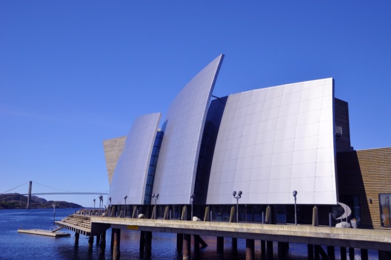 ![]() Wir fahren weiter nach Roervik auf Vikna zum Kystmuseet Norweg, das zwar geschlossen war, aber hauptsaechlich durch die interessante Aussenarchitektur auffaellt.