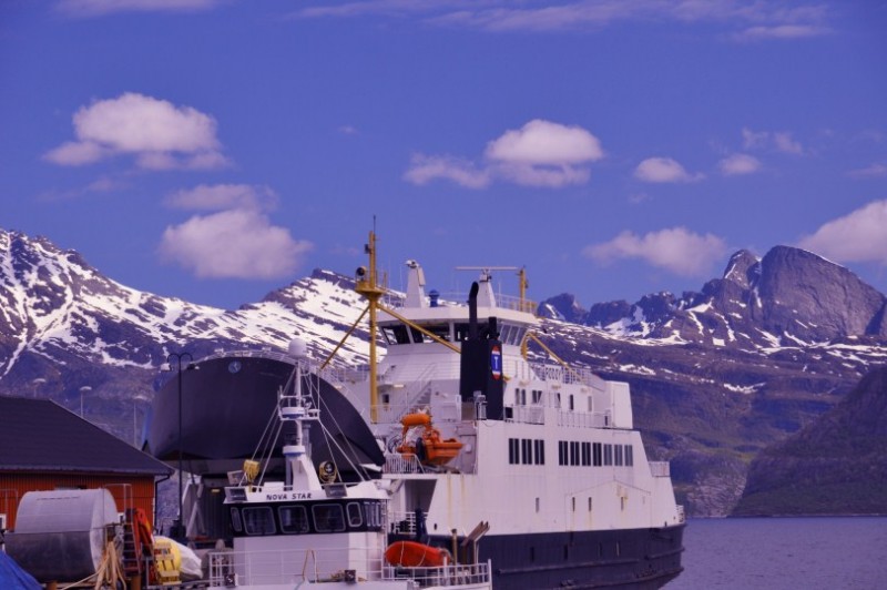 ![]() Wieder gehts nach ein paar KM schoener Landschaft auf eine Faehre von Bognes nach Skardberget und nach Narvik (das wir allerdings auslassen, da das Wetter nicht mitspielt und Narvik auch nicht wirklich interessant ist).