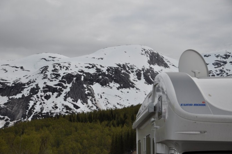 Da wir bis zur 17 eigentlich gar kein Zwischenziel einlegen wollten, ging es flott voran und so fuhren wir ueber Dombas und das Hochplateau Dovrefjell (natuerlich mit Schneeballschlachtpause) ueber Oppdal nach Trondheim. Eigentlich wollten wir die schoene Route ueber Roeros nehmen, aber da das Wetter nicht mitspielte, waehlten wir den kurzen Weg.