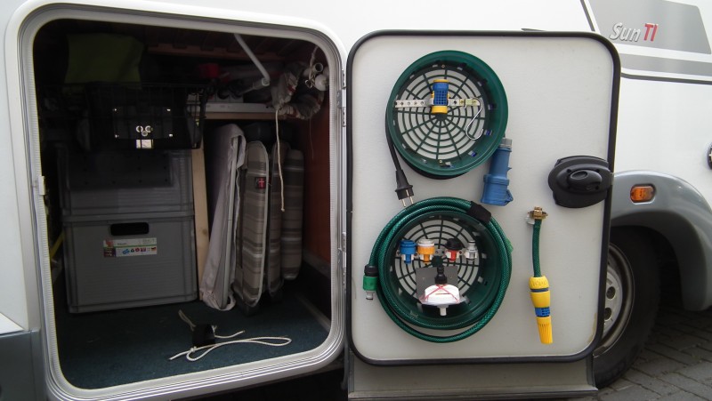 Ich würde gerne an der Innenseite der Garagentür ein größeres Netz anbringen um Schlauch und Kabel zu verstauen, und zusätzlich evtl. separat die Keile befestigen.
