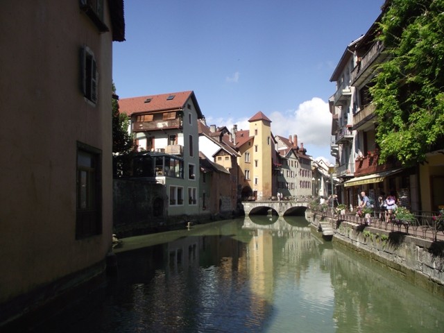 Wir sind wieder unterwegs. Nach 2 erholsamen Tagen am See wollen wir nun weiter zu unserem nächsten Etappenziel : Der Mont Blanc soll es sein. Aber zuerst nach Annecy, lt. Baedeker ein Klein-Venedig und da hatte er nicht zuviel versprochen. Es ist wirklich ein wunderschönes kleines Städtchen am Lac d'Annecy. Das Wetter war klar und sonnig und der See präsentierte sich in einem klaren blau-grün-türkis. Das Städtchen ist durchzogen von kleinen Kanälen mit romantischen Brücken und einladenen Restaurants und Cafes. Irgendwie war dort eine heitere Grundstimmung, sonnig, urlaubsmäßig, genussvoll. Nach einem langen Spaziergang durch die alten Gassen und an der Strandpromenande vorbei ging es dann wieder zum Womo. Knappe 800 mtr. aus der Stadt heraus dann wieder eine V/E und wir konnten "erleichtert" wieder los. Von Annecy aus fahren wir auf die D1508 Richtung Ugine und dann weiter die wunderschöne, wenn auch kurvenreiche D1212 über Megeve bis kurz vor Chamonix. Dort halten wir auf einem Parkplatz mit atemberaubende Blick auf den Mont Blanc und halten unserer Mittagspause. Dann ging es weiter. Kurz nachdem wir gestartet haben scheppert unser Auto aus dem Motorgehäuse und wir bekommen drinnen keinen Strom fürs Navi. Gott sei Dank kommt nach knappen 500 mtr wieder ein Parkplatz und wir halten voller Panik. Jürgen geht raus und öffnet die Motorhaube und es qualmt und stinkt entsetzlich nach verbranntem Gummi oder was auch immer. Voller Entsetzen sehen wir uns an und dann, dem Himmel sei Dank.... wir sind noch kurz vor unserer Tour Mitglied geworden....... rufen wir den ADAC an, eine freundliche Dame nimmt alles auf und verspricht schnelle Hilfe.. Es dauert wirklich keine 10 Minuten, da kommt ein gelbes Auto und ein freundlicher Herr schaut in unser Auto und ruft den Abschleppdienst an. Nach weiteren 10 Minuten kommt dann tatsächlich ein Abschleppwagen, ein Automonteur schaut fachkundig in unseren stinkenden Motorraum und bittet Jürgen zu starten. Jipihhhhh, das Ding springt ohne Theater an und scheppert nicht, stinkt und qualmt nicht !!!!! Was ist das ?? Niemand weiß Rat, so können wir jedenfalls auch nicht weiterfahren. Wer weiß, wie lange das Glück hält. Alle beugen sich nochmals über den Motor und dann schreit Jürgen : Was ist das denn ???? Da liegt tatsächlich ein Teil der Metallabdeckung für die Lichtmaschine lose zwischen den Kabeln. Abgerissen, teilweise verrostet und nur noch an einem Punkt wohl gehalten. Also nicht schlimm, wir sollen einfach unsere Tour weiterfahren, wir sollen es in Deutschland schweißen lassen. Das lose Ding hatte einen Kurzschschluß verursacht, jedoch nur kurzfristig und alles war wieder ok, nachdem das Teil nicht mehr auf dem Pluspol der Lichtmaschine gelegen hat. Es war an einer Ecke ein wenig angekokelt, zum Glück hatte Jürgen direkt alle Stromkontakte unterbrochen. Nach diesem Schreck haben wir uns herzlichst und voller Dankbarkeit bei den gelben Engeln bedankt und wir sind nach Chamonix weitergefahren. Hier fanden wir direkt am Ortseingang einen Stellplatz und haben uns erst einmal auf diesen Schreck zwei große Gläser Roten aus der Provence gegönnt. Puh...... erst hieß es abschleppen, Hotelübernachtung, warten auf Ersatzteile..... der Monteur wußte ja auch nicht, was unser armes Auto hatte. So, es wird langsam etwas kühler, wir sitzen draussen und freuen uns auf morgen. Hier direkt gegenüber ist die große Seilbahn, die auf 3800 mtr. hoch geht, da wollen wir rauf. Also gleich noch fix einen Haferbrei kochen, dann haben wir morgen früh etwas Handfestes im Bauch, Jürgen muss nur noch die Körner von Hand mahlen, Strom haben wir hier auf dem Platz nicht. Fotos
