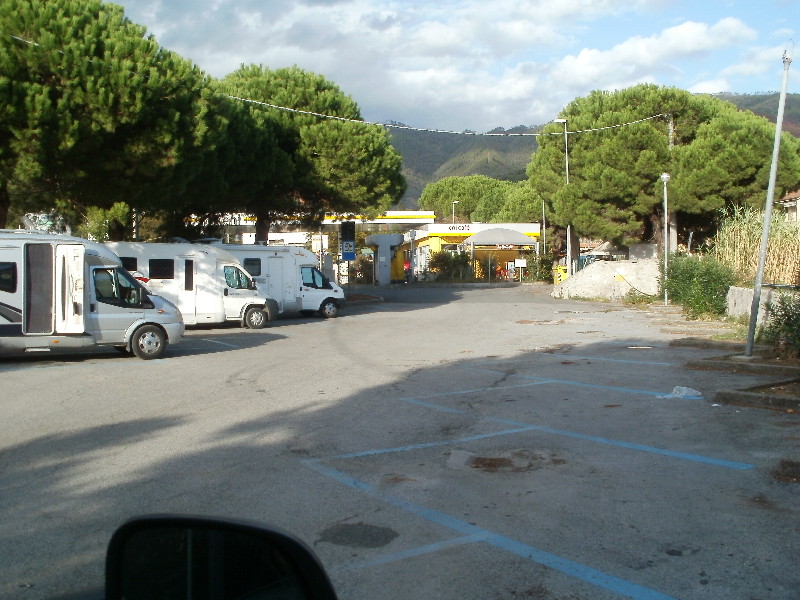 wir haben uns dort vor 2 Jahren versucht, leider an einem Samstag. Gnadenlos überfüllt, da es auch in Italien viele Womo-Fans gibt. Darum Wochenende unbedingt meiden. Wir haben uns den SP am 25.9.2012 angeschaut . Liegt hinter einer Tankstelle an stark befahrener Strasse ! Eben und geteert. VE vorhanden ! Platz ist ausgeschildert ! Liegt Nahe der Zugstation zur 5 Terre .