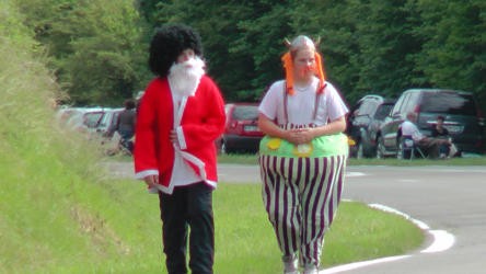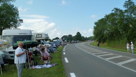 Aber wenn Du mit dem PKW hinfährst, kannst Du doch morgen nach Metz. Fahr audf die D 5 nach Marly, da siehst Du dann das gesamte Feld für etwa 4 Sekunden durchrauschen. In St. Fargeaux ging es Bergauf, das Video, welches meine Frau machen wollte, zeigte nur die Helme der damals 180 noch aktiven Fahrer für drei Sekunden. Wir standen in der 4. Reihe.