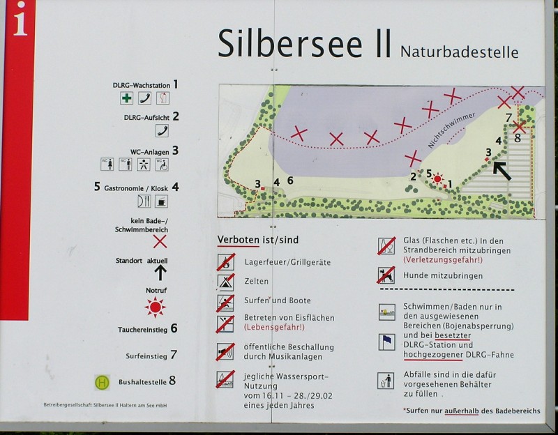 Du musst zum Silbersee II fahren, sonst fährst Du zum Platz in Haltern. Bitte denke daran, nur am Anfang vom See her gesehen sind Steckdosen für Strom. Ich glaube nur 6 Stück. Habe noch mal Bilder an-gehangen.