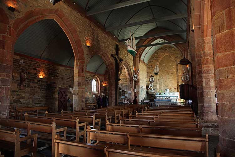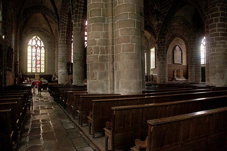 Wir fahren dann die „Wilde Küste“ ab und nachdem Franky und Brigitte wieder ihr Auto haben, geht es weiter nach Guerande. Vor der Stadtmauer finden wir Parkplätze und gehen durch das südliche Tor in die Altstadt. Wir gönnen uns Crepes Complete und streichen dann zwischen vielen Geschäften durch die fahnengeschmückte Straße. Ganz oben steht die Kirche, alle Gassen treffen sich dort. Nach der Kirchenbesichtigung gehen wir noch eine kleine Runde, um dann wieder zum Auto zurück zu kommen.