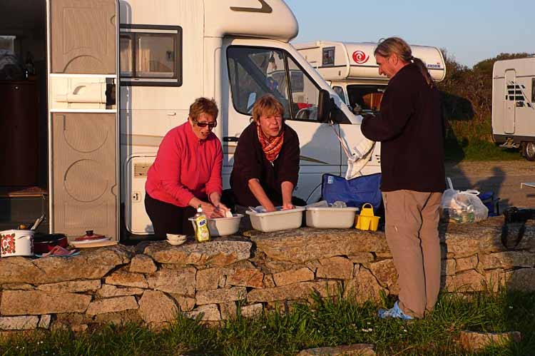 Nach einem Abstecher zum Dolmen mitten auf dem Dorfplatz von Crucuno, fahren wir auf dem Campingplatz auf der Halbinsel Quilberon,