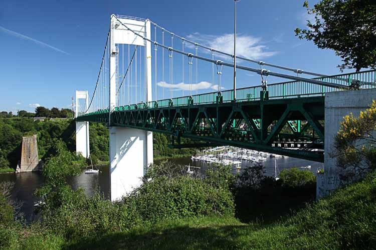 Weiters möchten wir jetzt die Route de Huitres besichtigen, leider ist heute Sonntag und die Verkaufsstände sind alle geschlossen. Wir finden aber dann doch noch einen Fischhändler, wo wir Austern kaufen können. Gleich vor dem Geschäft genießen wir sie, leider sticht sich Franky mit dem Austernmesser in die linke Hand. Er wird von Brigitte versorgt und ich öffne seine letzten beiden Muscheln. Dann kommen wir zur einer schönen Brücke in der Nähe der Stadt Le Rouche Bernard.