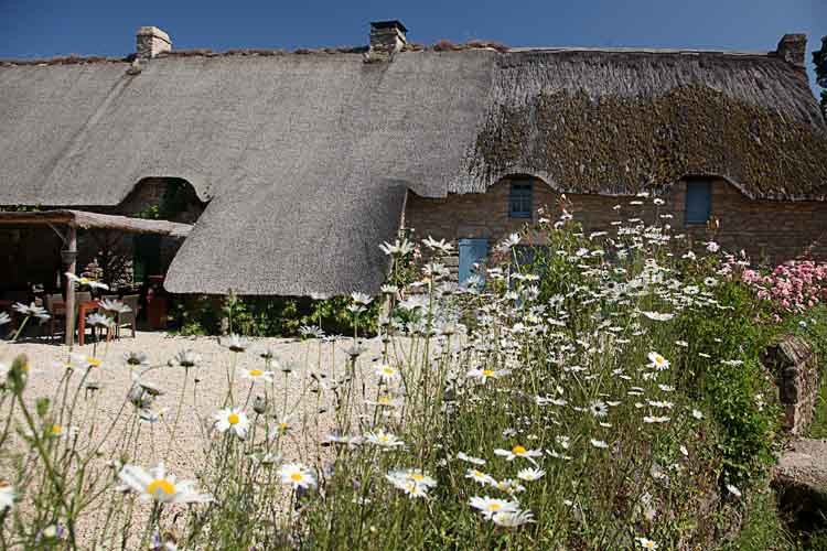 Heute können wir wieder einmal im Freien frühstücken. Dann fahren wir ein paar km zum Einkaufen und Tanken. Jetzt beginnt unsere Besichtigungstour. Durch ein Dorf mit Reetgedeckten Häusern kommen wir zum Dolmen de Kerbourg, eigentlich zu 2, die mit 50 m Abstand fast beisammen stehen.