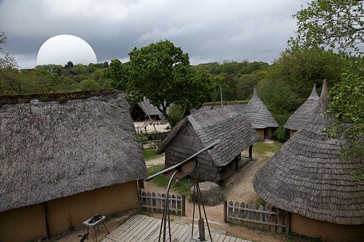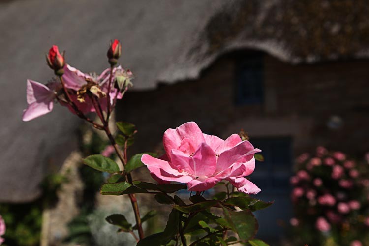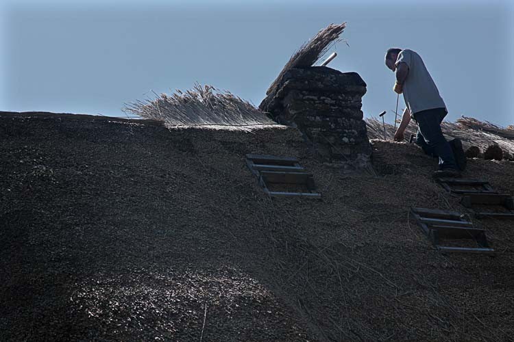 Dann besuchen wir das Dorf, es gleicht einem Freilichtmuseum. 2 Handwerkern können wir beim Dachdecken zusehen.