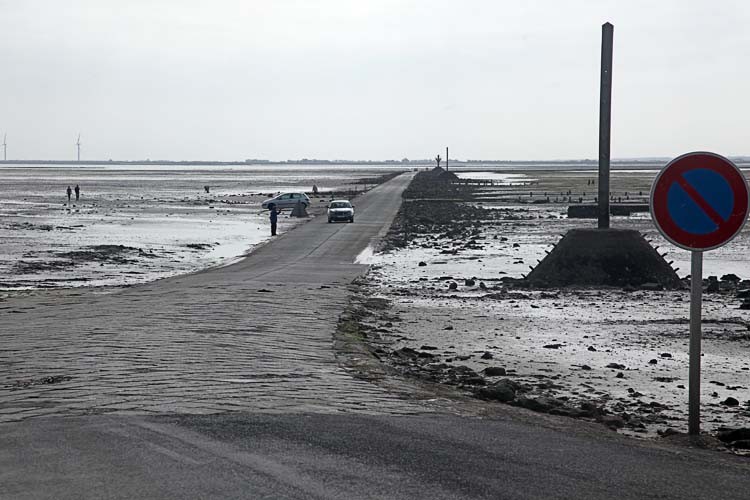 Nach dem Frühstück fahren wir noch einmal zur Le Gois. Jetzt ist Ebbe und die Autos befahren die Furt, auch Muschelsucher sind unterwegs.