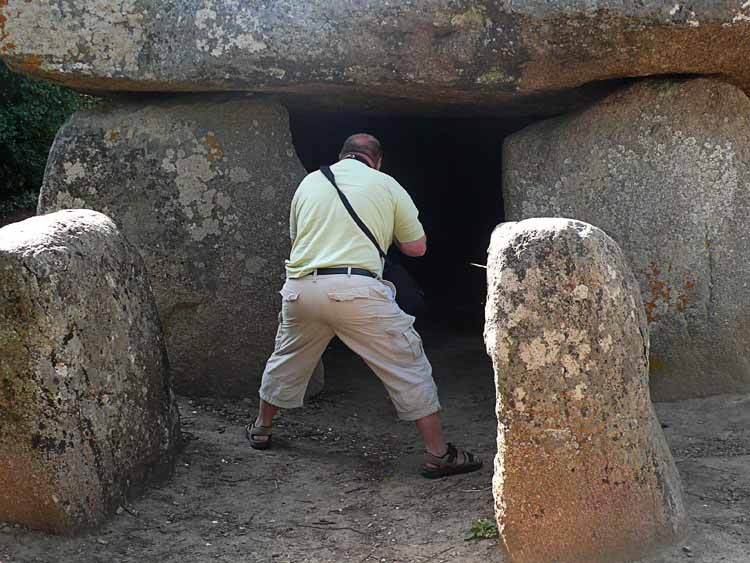 Nahe dem Badeplatz von Locmariequwer entdecken wir an der Küste noch in der Allee couverte einen Dolmen, das Innere erforschen wir mit einer Taschenlampe. Schöne Felszeichnungen können wir bestaunen.