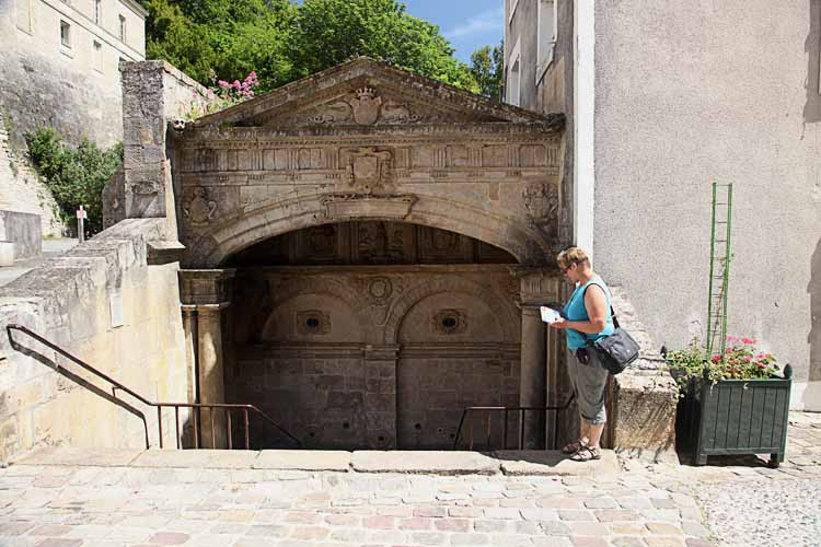 Dann gehen wir durch schöne alte Gassen zum Brunnen, der der Stadt ihren Namen gab.