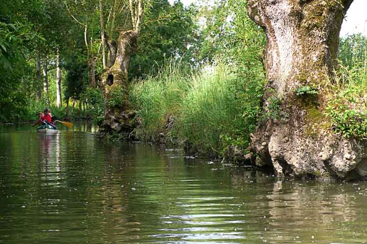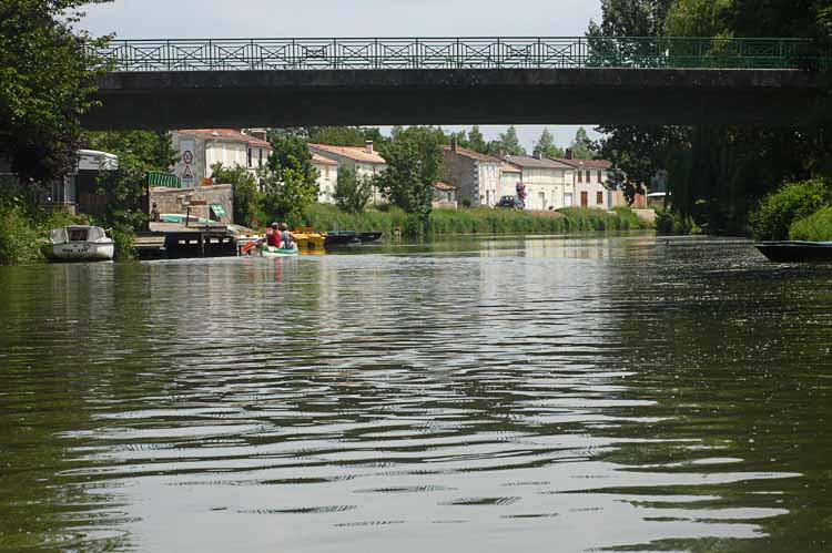 Weiter geht es durch das riesige Sumpfgebiet, das von vielen Kanälen durchzogen wird. Über Arcais nach Damvix. Wir erkunden den Bootsverleih und fahren dann auf den schönen CP, Kosten: € 10,25.
