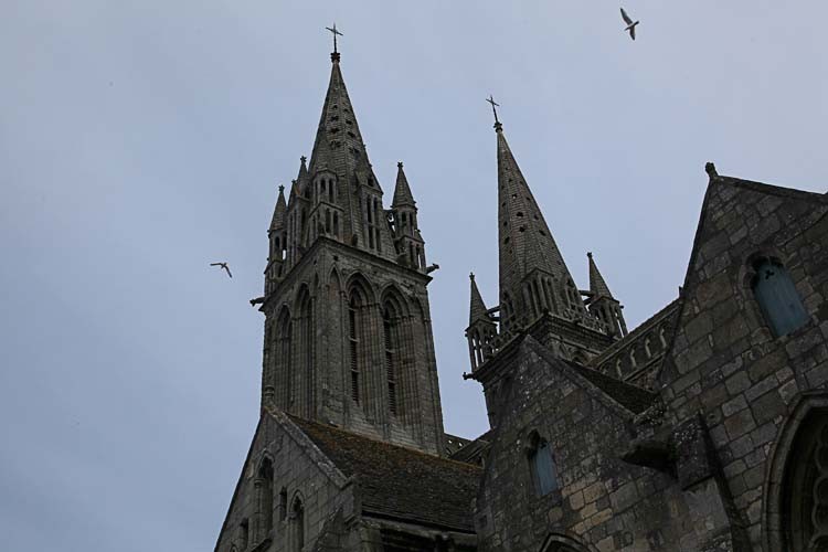 Mittwoch, 23.05.12, Tag 8 Frühstück bei Zukis, dann mit den Rädern in die Stadt Quimper, wir besichtigen die Kathedrale, deren Hauptschiff ums Eck gebaut ist. Am großen Markt kaufen wir Lachs, Muscheln und Entercrotes, damit wir in den nächsten Tagen sicherlich nicht verhungern werden. Dann machen wir uns auf den Weg zum Pointe du Van, Unterwegs kommen wir noch an den Windmühlen vorbei, kurzer Fotostopp.