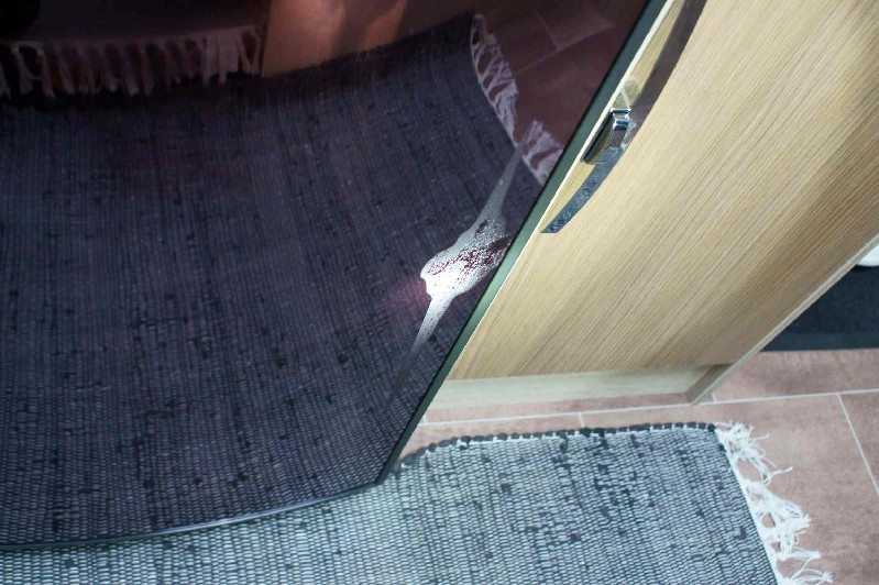 Das Bild deutet darauf hin, dass hier im Bereich der Türverriegelung ein Isolationsstreifen fehlt, der hinter der Dekorplatte eingesetzt werden müsste.