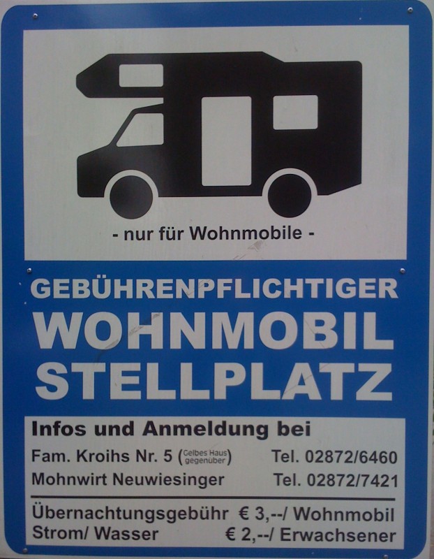War am 14.7.2012 da, asphaltierter Platz, Strom, Wasser Toiletten ok, netter Ort, Stellplatz € 3,--, Strom € 2,--