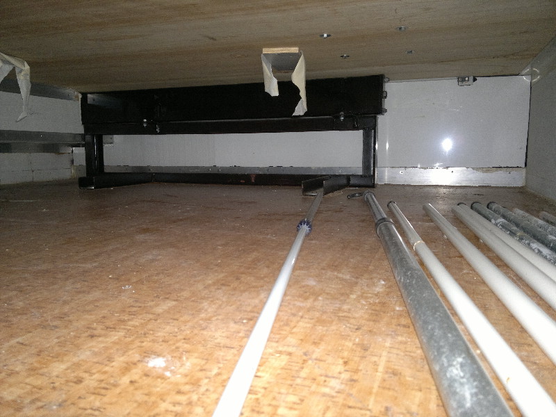 Staufach unterm Bett da steht mein Frischwassertank beheizt der gemietete war wohl nicht Winterfest denn da wird dieser Raum als Stauraum genutzt.