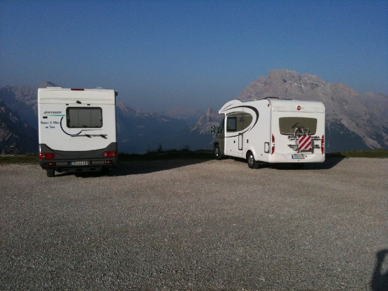 In wenigen Augenblicken kam Nebel hoch und die WoMos sieht man nur wie durch einen Schleier.