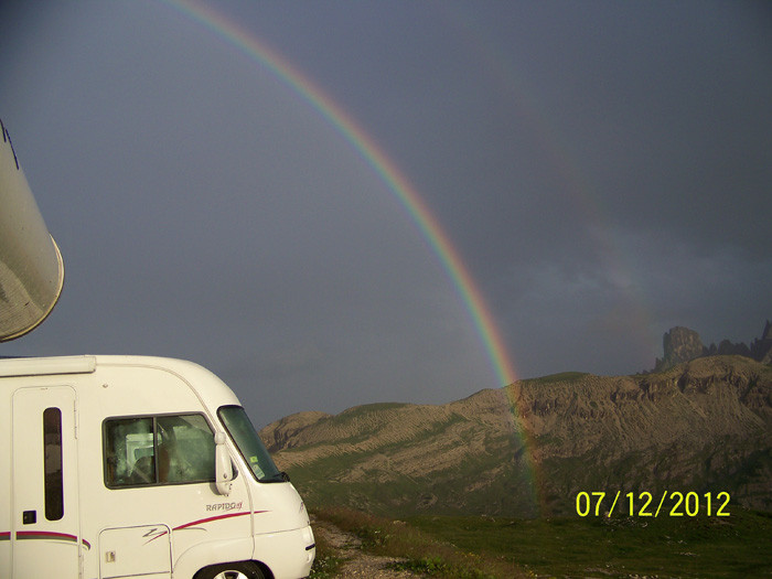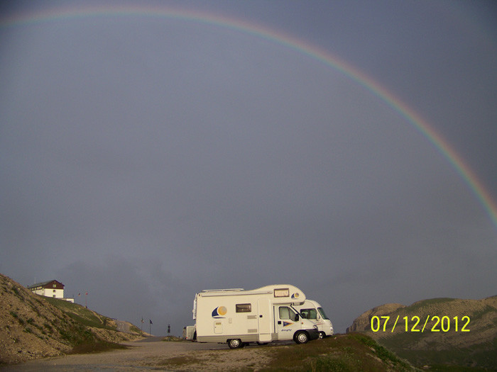 Aber sehr schön war der Regenbogen, den konnte ich leider nicht voll aufs Bild bringen, da es hinter mir abwärts ging, es ist schon einmalig. wenn man von oben auf die Gipfel schauen kann.