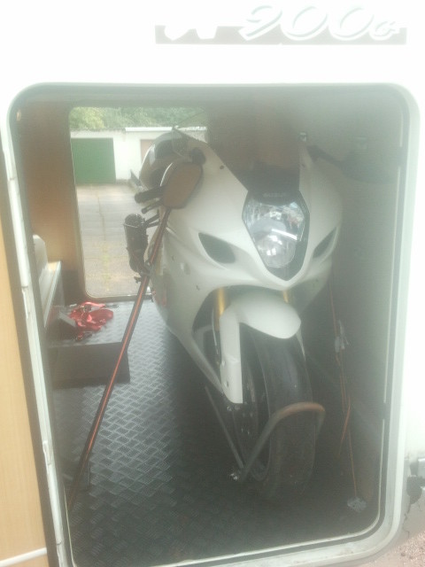 Der Roller wird auf dem SMV AluRollistar transportiert. Das ist ein kurzer Anhänger auf dem der Roller quer zur Fahrtrichtung steht. Tempo 100 zugelassen und kann in der Garage senkrecht an die Wand gestellt werden.