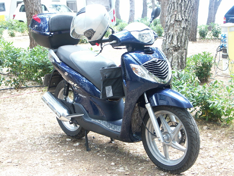 Da meine Garage nicht abgedichtet war und mir ausserdem die Fahrleistungen der Bee zu schwach waren (max ca. 80 kmh) habe ich den Gedanken des Garagentransportes verworfen und mir einen "richtigen" Roller zugelegt Honda SH300, mit ABS, läuft 130 kmh, man kann also immer (auch auf der Autobahn) im Verkehrsstrom mitschwimmen.